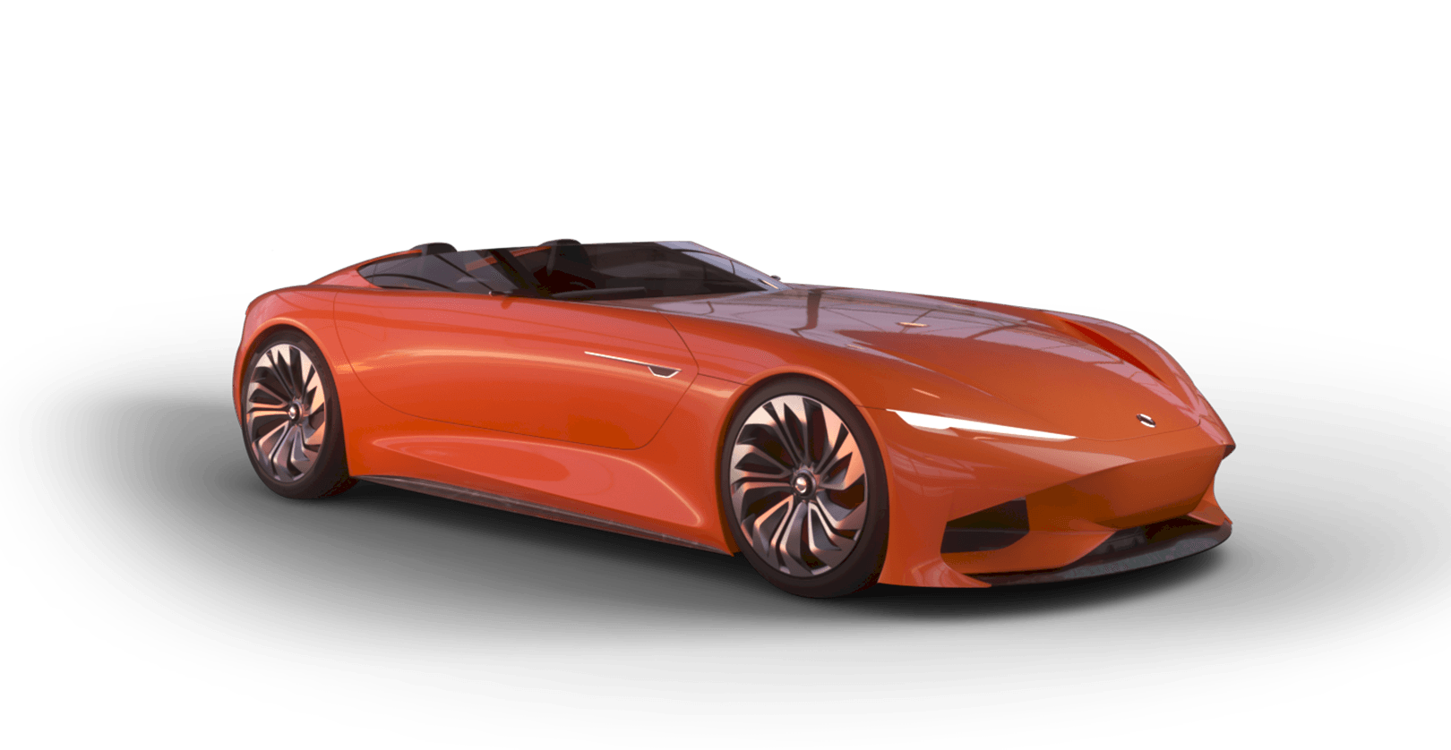 Sculptural headrests spill out from the cabin to meet the rear spoiler as a free-flowing, one-piece cradle gently cascades down to cocoons both driver and passenger. Using never-before-seen materials and finishes including chopped carbon fiber flakes to structure the center console give the Karma SC1 Vision Concept unique personality and voice.